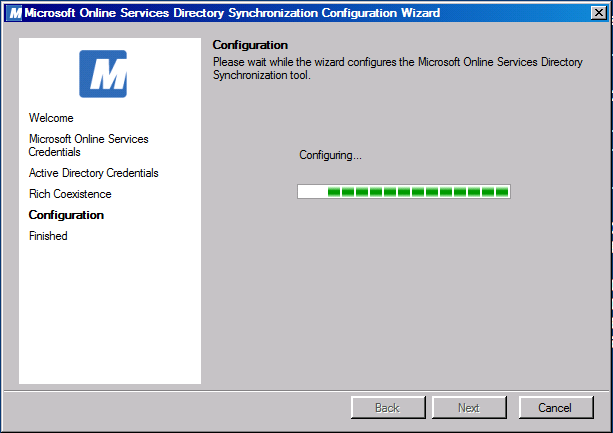 During the synchronization configuration, you will need to provide your Office 365 credentials for your tenant as well as AD credentials. Please note that the AD account used must be Enterprise Administrator