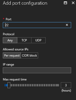 When defining the management port (or editing the default ones) you can define from where and for how long the JIT Access will be granted – default is set to 3 hours from anywhere