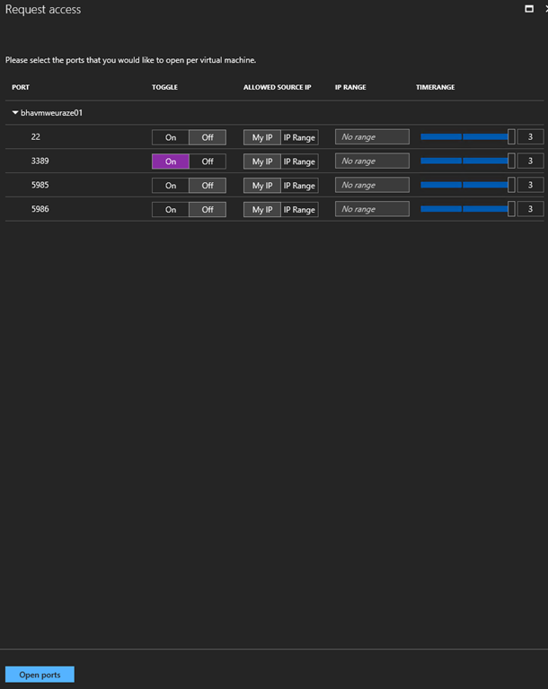 When activating the JIT Access, you have to define to which port the functionality will apply; in case of you are using other ports to manage the VM and to not ‘block’ legitimate access (like when hosting a web server); there is already a list of predefined known management ports