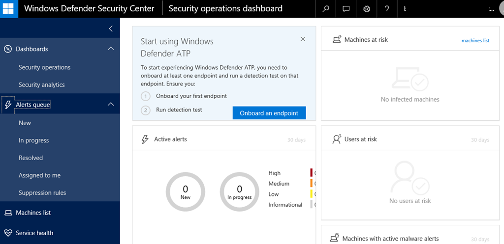 After you have completed the ATP setup and have on boarded at least one device, your dashboard will start reporting the state of your users/devices