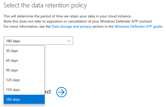 Then you define the ATP data retention policy to match your requirements (and probably legal/regulatory needs) – from 30 days to 180 days.