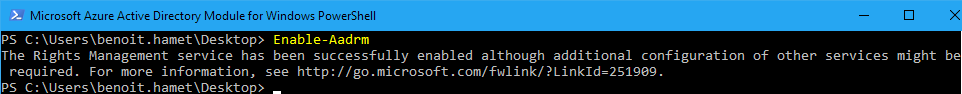 - Run the following command to enable Azure ADRMS