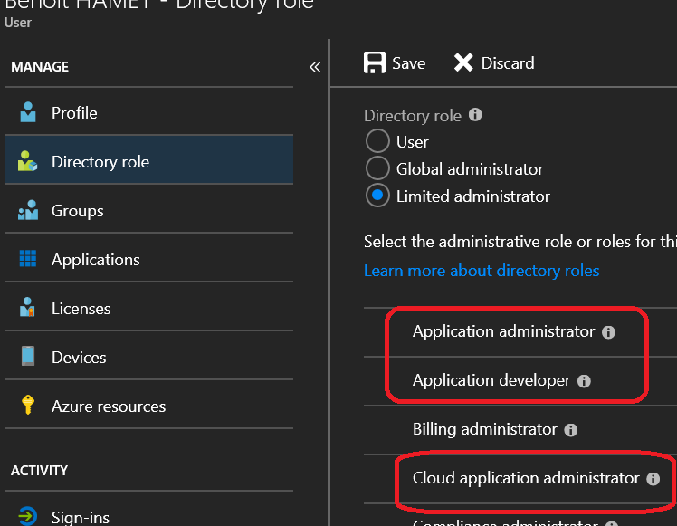 - Cloud Application Administrator: This role grants all the abilities of the Application Administrator, except it does not grant access to Application Proxy settings (no on-premises access).