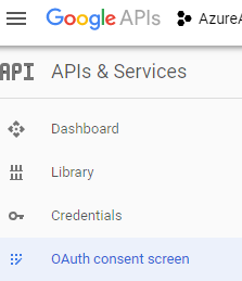 Once your Google API project has been created, configure the OAuth consent screen option of your project