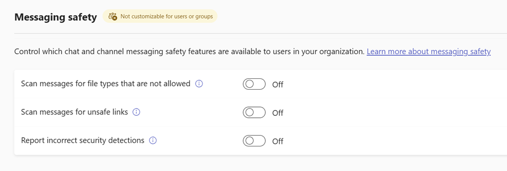 To manage the link protection feature, connect to your Teams administration portal (https://admin.teams.microsoft.com/) to edit the global messaging policy under the Messaging Safety section