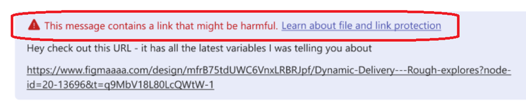 Unlike Defender Safe Links, this new Teams security feature immediately tells end-users if the link/attachment they received is not safe by showing a warning message to both the sender and recipient(s).
