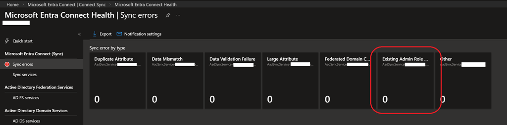 You will be identify if there is any issue using the Microsoft Entra Connect Health\Sync Errors blade (Microsoft Entra Connect Health – Microsoft Entra admin center) report with the Existing Admin Role Conflict