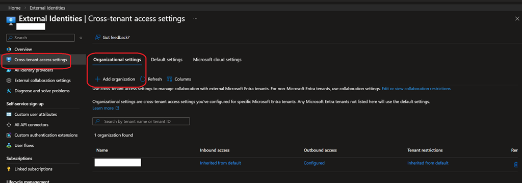 If you are setting up cross-tenant for the first time, you need to add an organization in the Organizational settings tab of the Cross-tenant access settings tab on both source and target tenant