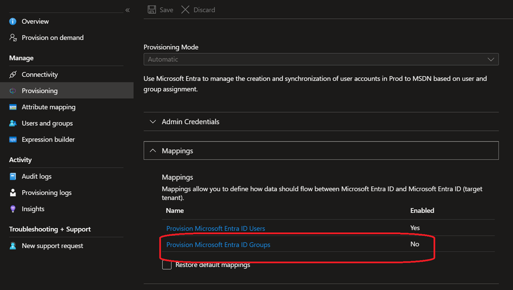 Once done, you can update the source tenant cross-tenant synchronization to enable group synchronization; you must use the new provisioning experience